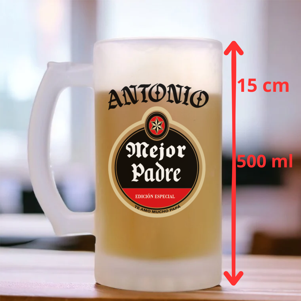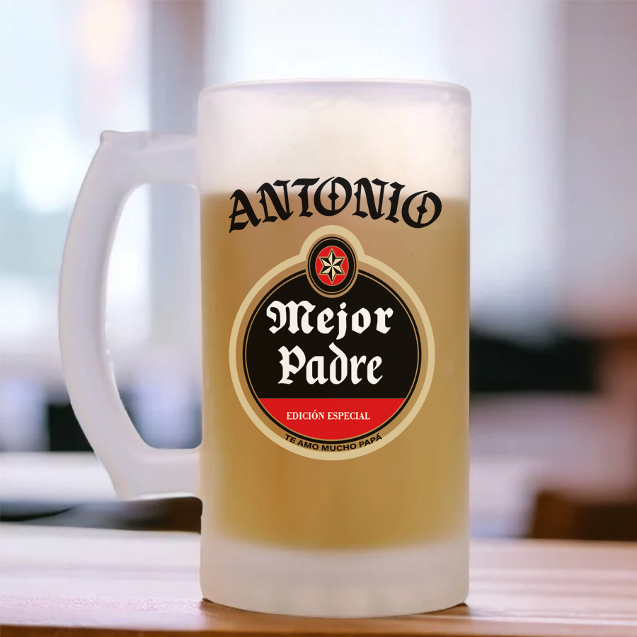 Qué excelente idea para celebrar a los padres en su día especial. Una jarra de cerveza personalizada es un regalo único y significativo que seguramente les encantará